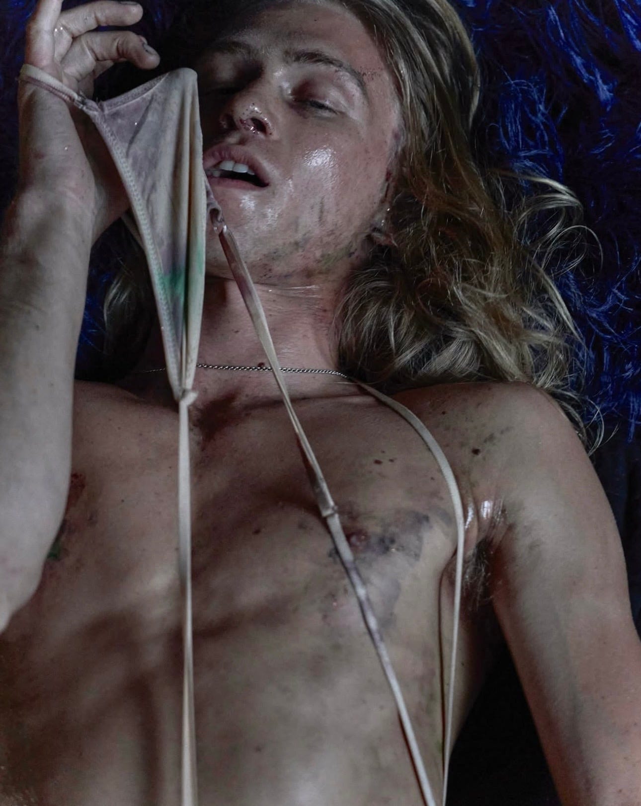 [I’ve] gradually been transitioning to film and filmmaking [full time], and that’s why I came up with All The Dead Boys. I love taking pictures: shooting celebrities, hair color boxes, advertisements, and all that stuff is great, [but] at a certain point, I looked around and I was like, “There are 35 people here hovering over the monitor, all with an opinion.” It wasn’t as joyful as taking pictures had been in the beginning when it was [just] me and my friend in high school. I would do her makeup and make her dress. We’d go to a field, I’d cover her in mud, and give her a stick. That shit. I was like, “What do I like?” I like weird fucked up horror movies and naked boys. I came up with All The Dead Boys as a creative outlet to keep me interested, engaged, and in love with making images.